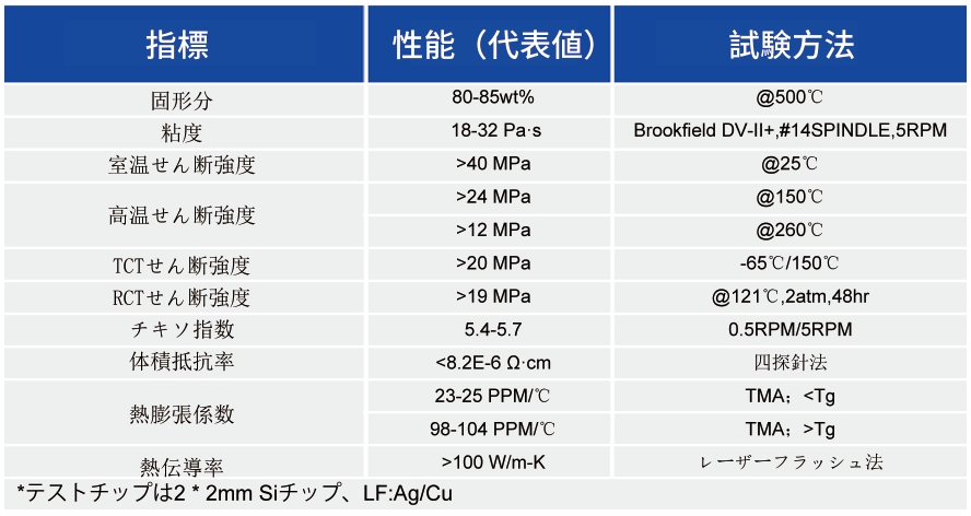 HS-401は、高出力IGBTなどの高出力チップ実裝用のナノ焼結(jié)銀ペーストです。このペーストは高熱伝導(dǎo)性、高導(dǎo)電性、高信頼性を有し、印刷プロセスに適した?jī)?yōu)れたレオロジー特性を有しています。無(wú)加圧または加圧による急速焼結(jié)プロセスにも適用できます。最大で12mm * 12mmの大型ウェハーまで実裝可能です。