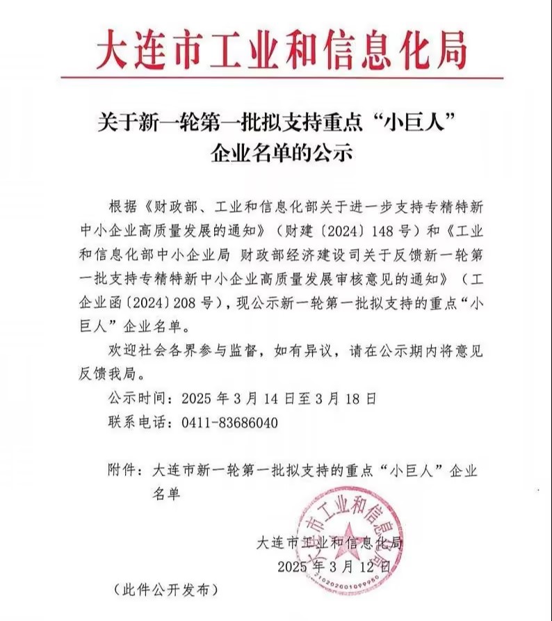 大連海外華昇電子科技有限公司成功入選國家工信部頒發(fā)的新一輪第一批擬支持重點“小巨人”企業(yè)名單,成為大連市電子材料領域唯一獲此殊榮的企業(yè)。此次評選聚焦“專精特新”硬核實力,彰顯企業(yè)在高精度微納米級電子漿料領域的技術突破與市場引領地位。