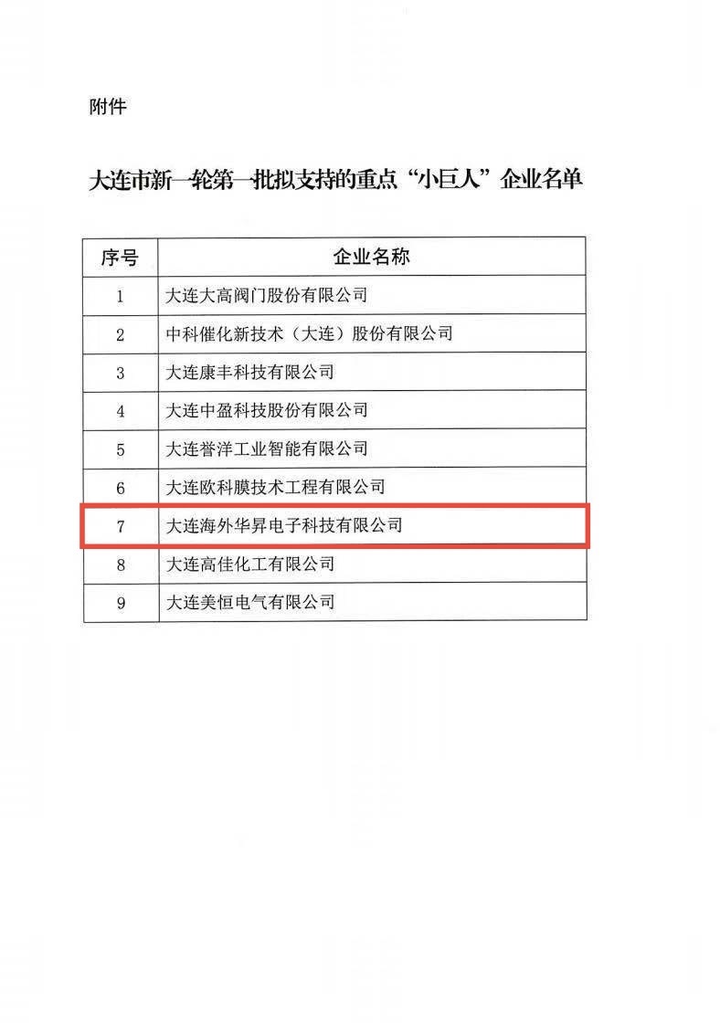海外華昇成功入選國家工信部頒發(fā)的新一輪第一批擬支持重點“小巨人”企業(yè)名單